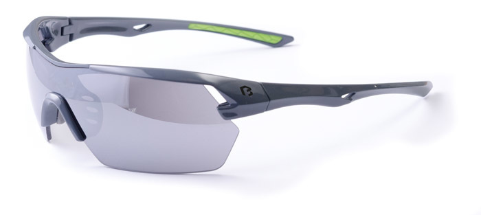 Univerzális, többcélú, sport napszemüveg. • Keret: modern, ergonómikus, szuperkönnyű Grilamid TR90, a szárakon csúszásgátló betétekkel. • A maximális kényelemről állítható orrnyereg gondoskodik. • Lencse: #3 kategóriájú fényáteresztő képességű, 100% UV védelmet biztosító, S20 füstszínű polikarbonát, „Silver Mirror” fényvisszaverő bevonattal. • Elérhető színek: matt fehér (8445-WH), és Gunmetal szürke (8445-GY) • Egyéb: a tartozék, mikroszálas tárolótasak segítségével könnyen tisztítható.
